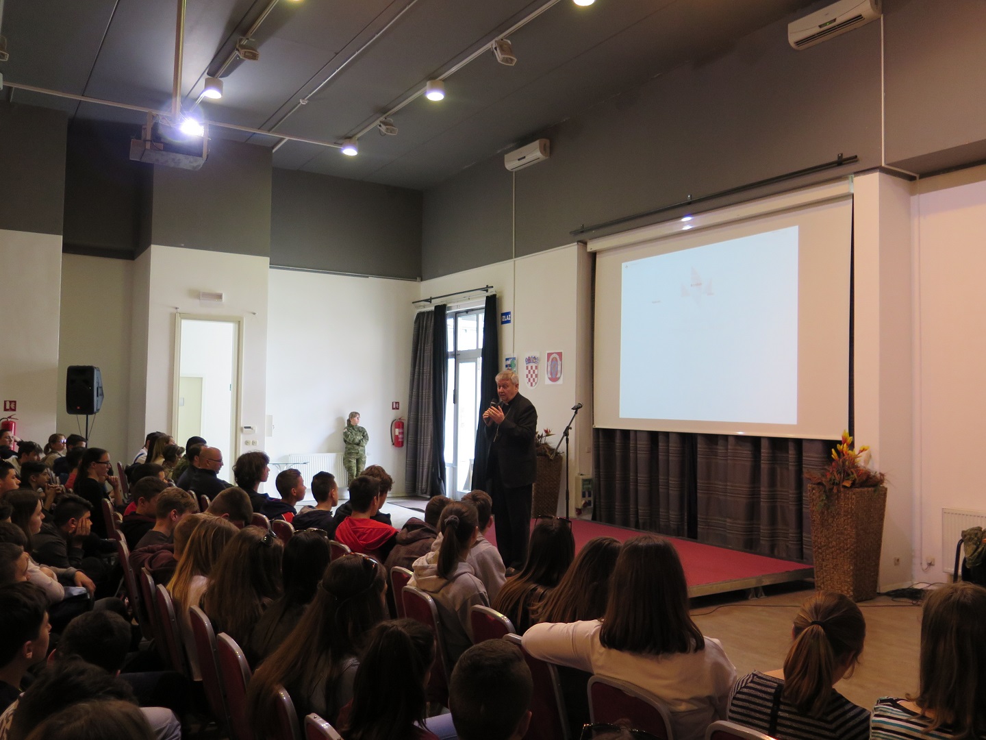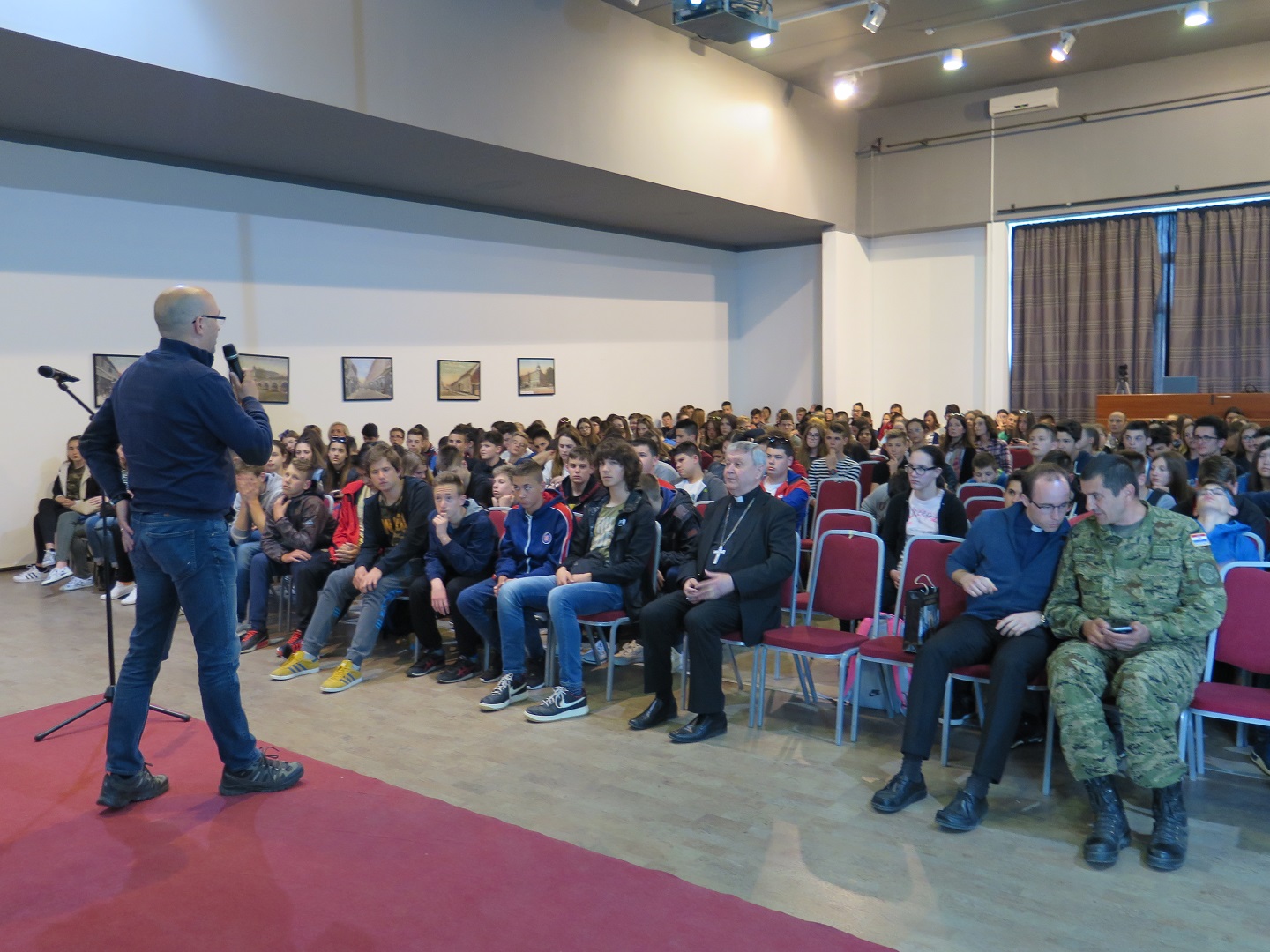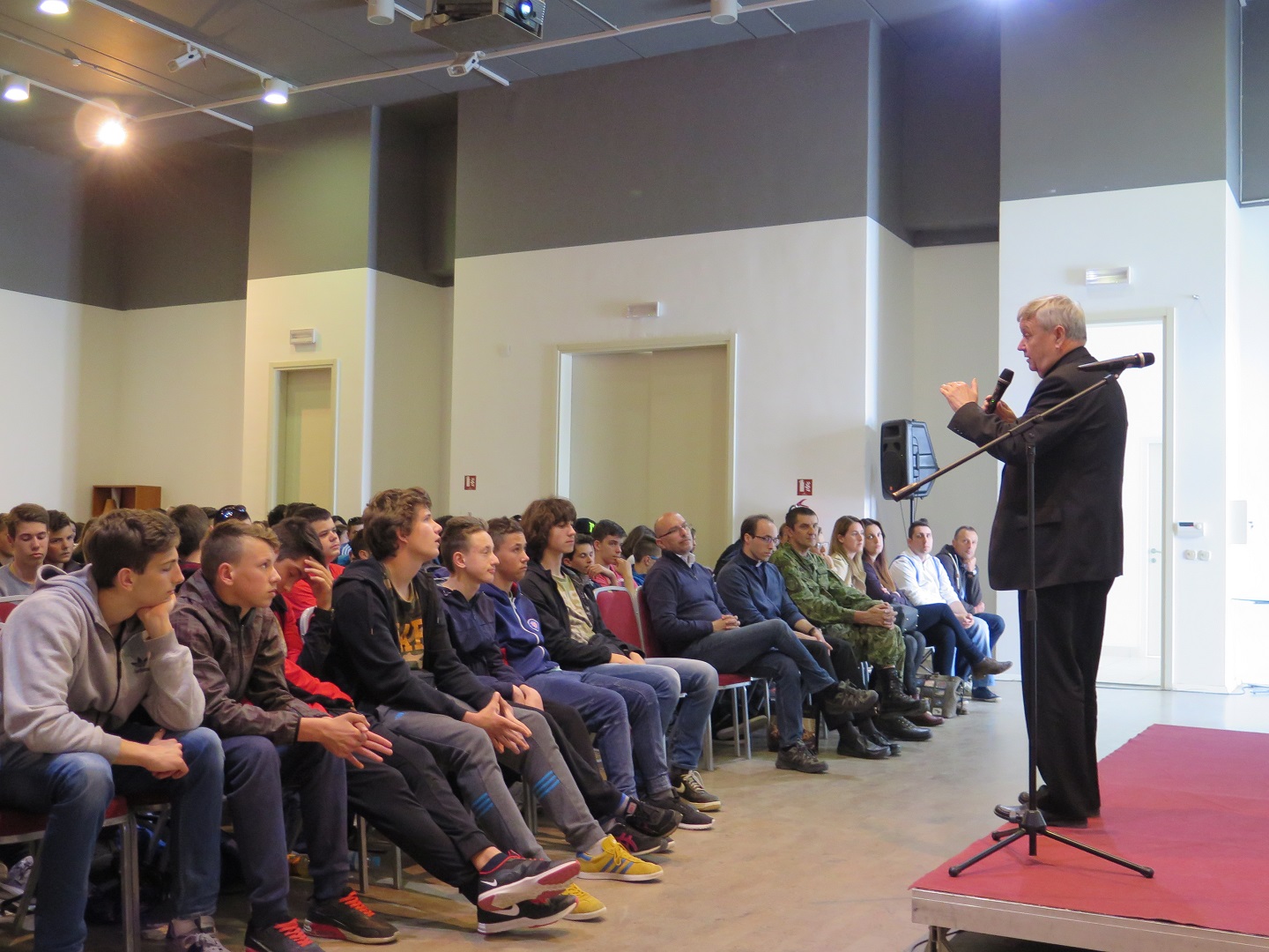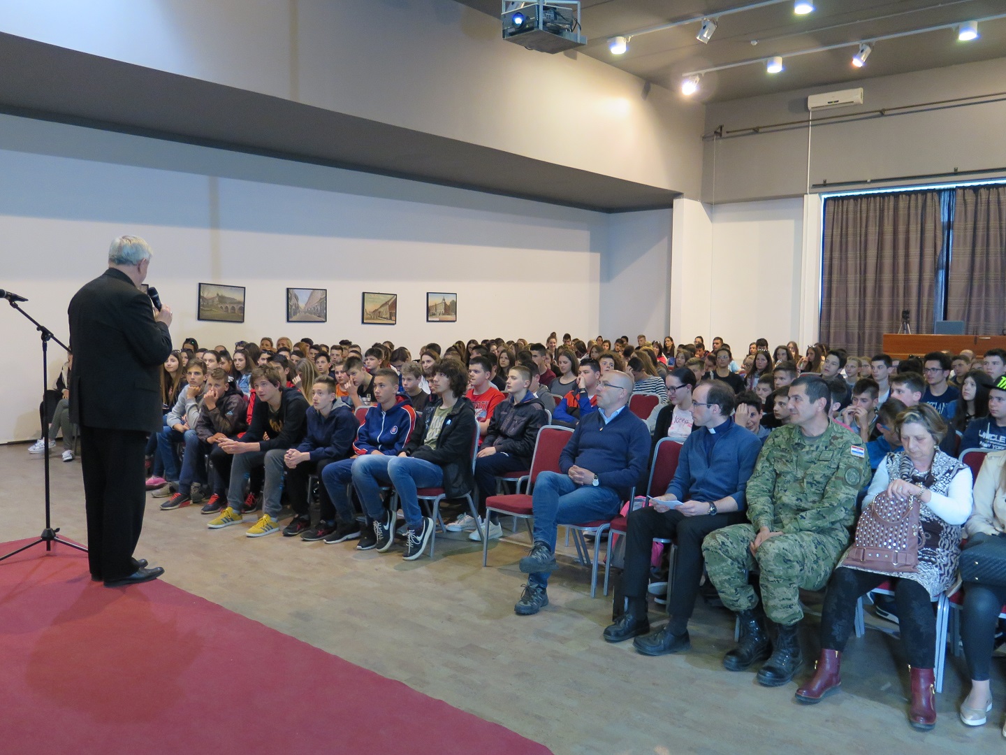 U svom predavanju mons. Mrzljak govorio je kako je usko povezan sa Vukovarom, odnosno da je rođen upravo ovdje 1944. godine. Godinu dana nakon rođenja, 12. travnja 1945., iz Vukovara mu je odveden otac te se nikada nije vratio, bilo je to upravo na današnji dan prije 72 godine. Također, mons. Mrzljak se prvi put vraća u Vukovar tek nakon Domovinskog rata, a od tada upravo svakog 12. travnja drži misu u Vukovaru. Smatra kako su se velika zla događala u Vukovaru, kako tijekom Domovinskog rata tako i nakon Drugog svjetskog rata kada su mnogi ljudi odvođeni i stradavali.
